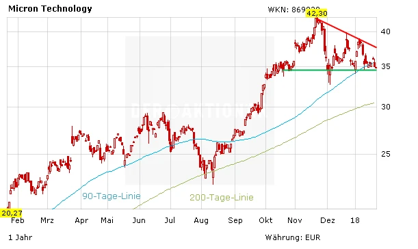 Die Korrektur bei den Speicher-Preisen wird kommen – jedoch nicht im ersten Halbjahr 2018. Micron könnte daher noch einige Male durch starke Quartalszahlen überzeugen. Steigende Gewinne führen bekanntlich zu höheren Kursen. DER AKTIONÄR empfiehlt: Gewinne laufen lassen.