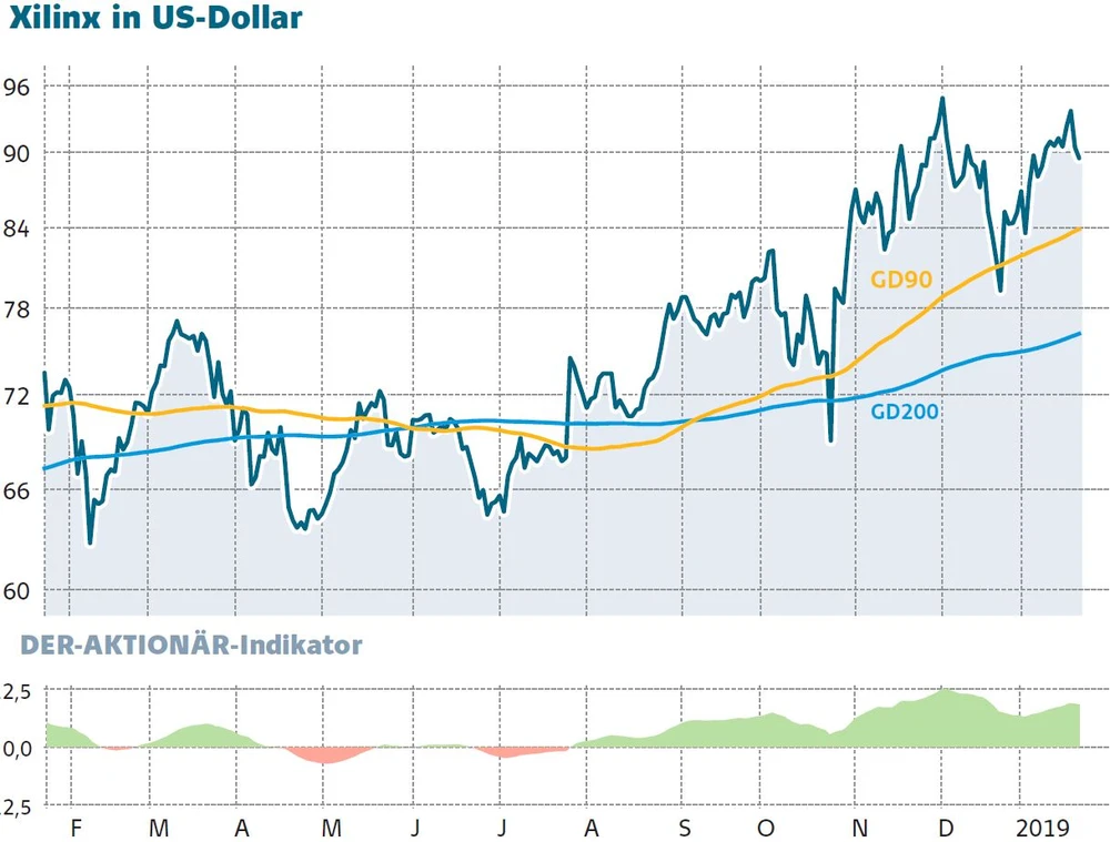 Xilinx dürfte damit im laufenden Geschäftsjahr das beste Jahr der Unternehmensgeschichte schreiben. Zum ersten Mal wird die Umsatzmarke von drei Milliarden Dollar geknackt. Dabei sei Anlegern jedoch gesagt: Mit einem KGV für die nächsten zwölf Monate von 24 ist die Aktie nicht mehr die billigste. Nach Ansicht des AKTIONÄR, der die Aktie bereits in Ausgabe 02/17 empfahl, bleibt das Papier jedoch ein Kauf. Denn es gibt nur wenige Unternehmen, die mit Machine-Learning, 5G und Automotive von derart vielen Wachstumstrends profitieren wie der Chip-Spezialist Xilinx.