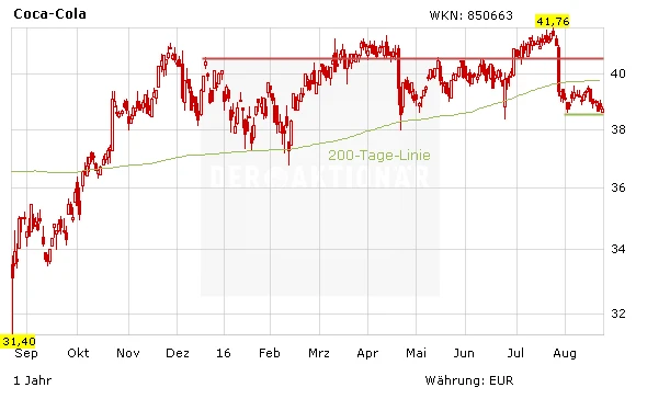 Sollte Coca-Cola angesichts schwindender Wachstumsraten im Kerngeschäft Übernahmeüberlegungen in Richtung Monster Beverage hegen, dann könnte dies die Börse durchaus honorieren. Und die Aktie von Coca Cola könnte wieder an Schwung gewinnen. Aber auch ohne derartige Überlegungen ist die Aktie mittlerweile aus charttechnischer Sicht an einer guten Unterstützung angelangt. Mittelfristig bis langfristig orientierte Anleger können einen Einstieg bei dem Dividendentitel ins Auge fassen.