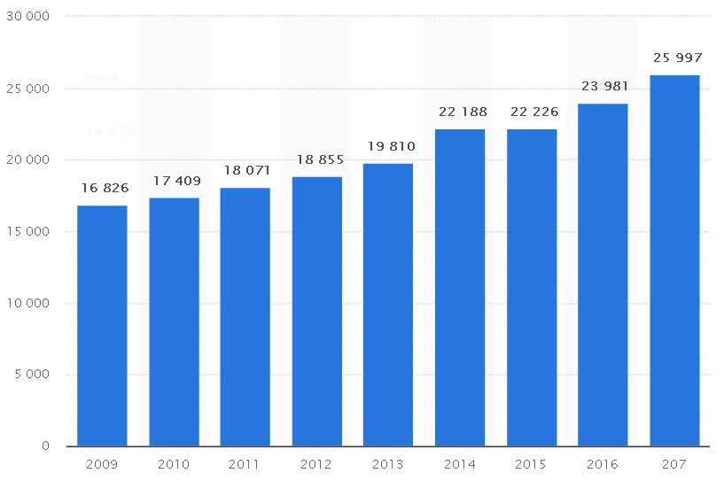 Zahl der Cannabis-Konsumenten in den USA (in Tausend)