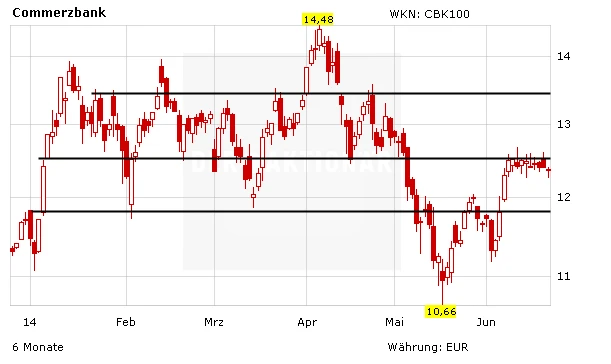Charttechnisch hat sich die 12,50-Euro-Marke als massiver Widerstand entpuppt. Am Freitag scheinen die Bären den Kampf um diese Hürde vorerst für sich zu entscheiden. Die CoBa-Aktie ist aus der kurzfristigen Seitwärtsbewegung abgerutscht. Nun droht ein Rücksetzer bis in den Bereich um 11,90 Euro.