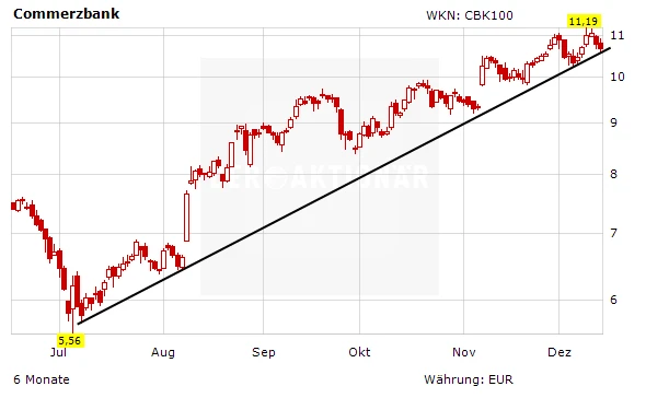Sollte die Fed sich mit dem Tapering weiter Zeit lassen, wird das die Aktienkurse beflügeln. Dann sollte auch die Commerzbank-Aktie in die Erfolgsspur zurückfinden. Investierte Anleger lassen die Gewinne laufen und sichern ihre Position mit einem engen Stoppkurs ab.
