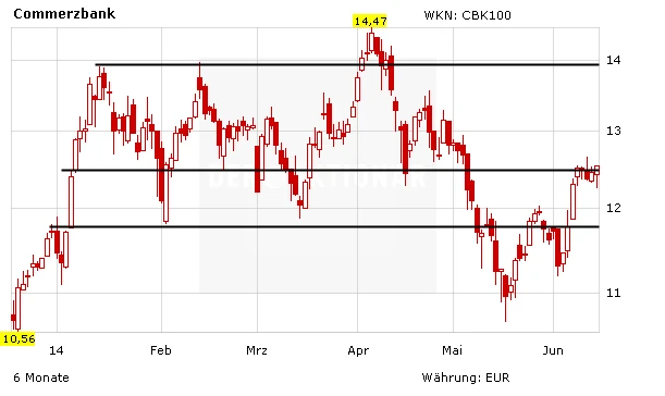 Die Commerzbank ist sicher kein Investment für risikoscheue Anleger. Zudem ist die Aktie mit einem Börsenwert von 14 Milliarden Euro nicht mehr günstig bewertet. Allerdings hat die Aktie nach wie vor ein starkes Momentum. Trader können auf ein Überwinden des Widerstands bei 12,50 Euro setzen. Der Stoppkurs liegt dann bei 11,70 Euro.