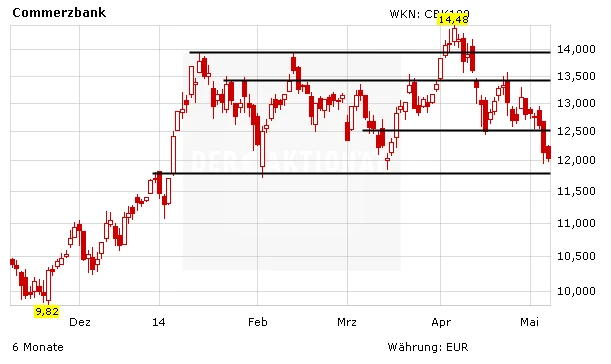 Matthew Clark, Analyst beim japanischen Analysehaus Nomura, traut der Commerzbank-Aktie 14 Euro zu. Das Kursziel liegt ein gutes Stück über dem durchschnittlichen Kursziel der Analysten von 13,09 Euro. Clarks Einstufung lautet weiter auf „Neutral“. Die Schwankungen beim Zinsüberschuss der Bank bezeichnete Clark als alarmierend. Gleichwohl hätten sich nach Vorlage der Ergebnisse die Chancen und Risiken nicht wesentlich verändert.