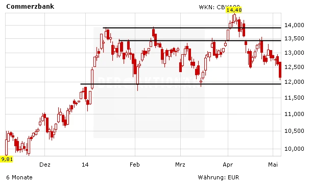 Die Ergebnisse der Commerzbank sind zwar schlechter als erwartet ausgefallen, doch halten sich die Abweichungen in Grenzen. Wichtiger für den weiteren Kursverlauf sind ohnehin die Fortschritte bei der konzerneigenen Abbausparte. Klar ist: 2014 wird für die Commerzbank ein weiteres herausforderndes Jahr. Konzernchef Martin Blessing erwartet trotzdem „eine Verbesserung des operativen Ergebnisses gegenüber dem Vorjahr“. Investierte Anleger bleiben dabei, der Stoppkurs sollte bei 11,50 Euro platziert werden.