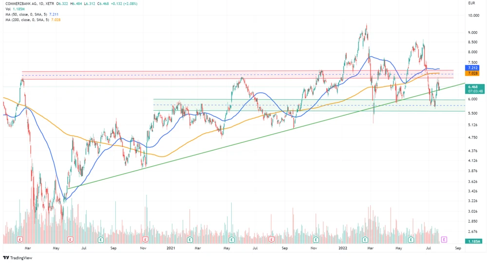 Nachdem die Commerzbank-Aktie innerhalb von wenigen Handelstagen fast 20 Prozent gestiegen war, nahmen Anleger zum Wochenende erste Gewinne mit. Die Aktie korrigierte daraufhin bis an die Marke von 6,30 Euro.