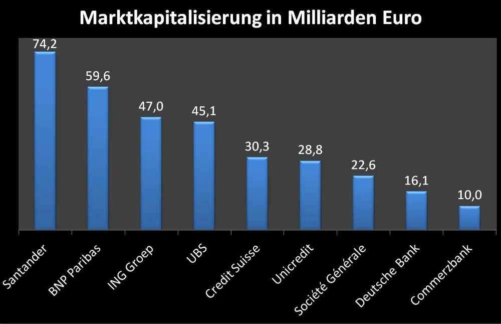 Noch wehrt die Politik die ausländischen Anfragen ab. Es soll ein nationaler Champion entstehen, auch um die Deutsche Bank zu stabilisieren. Dabei würde auch eine fusionierte Bank zudem unter den großen Instituten nach der Marktkapitalisierung zu den kleinsten Geldhäusern in Europa gehören.