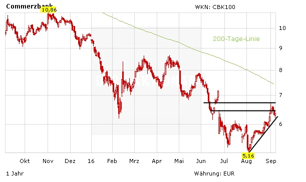 Die Commerzbank befindet sich derzeit wie die ganze Branche im Umbruch. Niedrigzinsen, strenge Aufsichtsregeln und Sorgen um die Kapitalausstattung belasten auch die Commerzbank-Aktie. Mit Stefan Schmittmann hat sich die Bank für eine interne Lösung bei der Neubesetzung des Aufsichtsrat-Vorsitzes entschieden. Das sorgt für die nötige Kontinuität. Charttechnisch testet die Aktie gerade den kurzfristigen Aufwärtstrend vom August. Hält die Unterstützung dürfte die Kurslücke bei 6,45/6,82 bald geschlossen werden. Mit einem erwarteten Kurs-Buchwert-Verhältnis von 0,26 für 2017 ist der Titel sehr günstig bewertet. Investierte Anleger bleiben dabei.