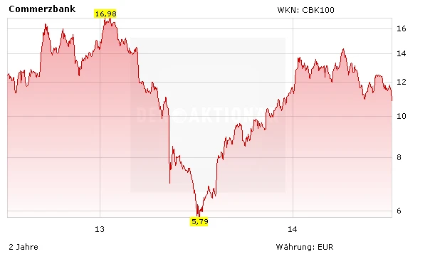 Die Commerzbank-Aktie ziert am Nachmittag mit Abstand das Tabellenende im DAX. Mittlerweile hat der Kurs auch die Unterstützung bei 11,00 Euro unterschritten und somit ein neues Verkaufssignal generiert. Wie DER AKTIONÄR bereits berichtete, droht nun ein Absturz in Richtung 10-Euro-Marke.