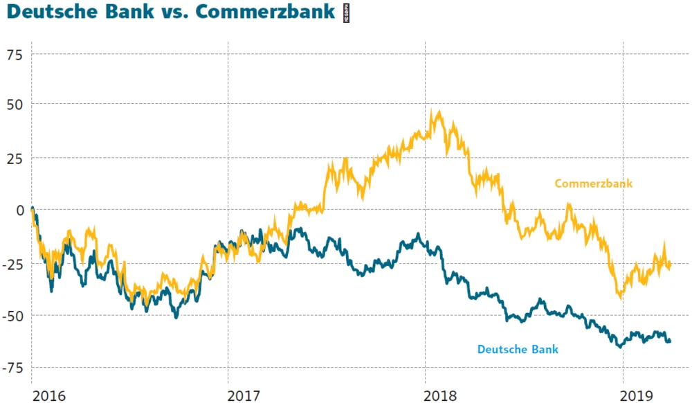 Vor zwölf Tagen haben die Vorstände von Deutscher Bank und Commerzbank angekündigt, über eine mögliche Fusion sprechen zu wollen – und damit bestätigt, was zuvor monatelang spekuliert wurde. Obwohl der Widerstand gegen das Vorhaben wächst, könnte es bald Realität werden – denn operative Besserung aus eigener Kraft ist kurzfristig wohl nicht in Sicht.