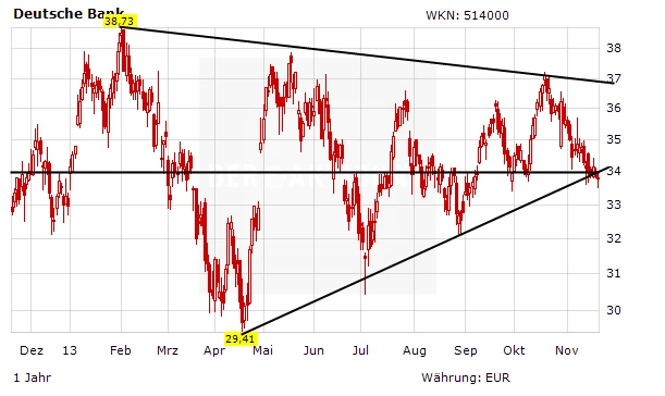 Das Sentiment für die Deutsche-Bank-Aktie trübt sich weiter ein. Kurzfristig drohen weitere Kursverluste. Mittel- bis langfristig hat das deutlich unterbewertete Papier aber reichlich Potenzial. Geduldige kaufen und setzen den Stopp bei 29 Euro.