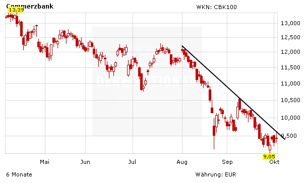 Die Commerzbank-Aktie kämpft derzeit mit dem kurzfristigen Abwärtstrend. Wird er nachhaltig gebrochen, wäre dies ein schönes Kaufsignal für Trader. Der Rest der Börsianer wartet an der Seitenlinie, bis die Volatilität aus dem Markt verschwunden ist. Dies könnte laut Robert Halver im November der Fall sein.