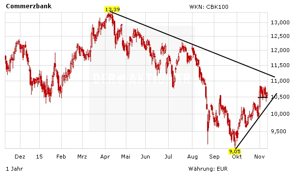 Die Commerzbank-Aktie gehört seit einer Ewigkeit zu den Underperformern im DAX. Doch in den vergangenen Tagen wendete sich das Blatt: Seit Anfang November liegt der Titel mit 5,1 Prozent im Plus, während der DAX gerade einmal ein Prozent zugelegt hat. Seit Anfang des Jahres notiert die Commerzbank-Aktie allerdings noch mit 3,4 Prozent im Minus, während der DAX um 11,8 Prozent gestiegen ist.