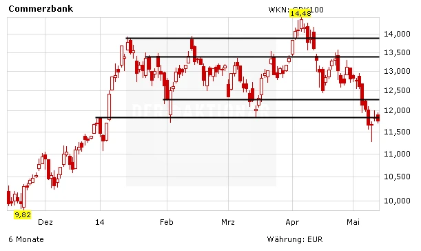 Die Commerzbank hat vor Steuern 324 Millionen Euro verdient. Die Konsensschätzung für das Gesamtjahr lautet auf knapp 1,2 Milliarden Euro. Vermutlich befürchten die Anleger, dass die Erwartungen zu hoch sind – zumal das erste Quartal traditionell das beste Quartal im Jahr ist. Außerdem ist die Aktie in diesem Jahr sehr gut gelaufen, sodass vielleicht einige Investoren jetzt einfach mal Gewinne realisiert haben.