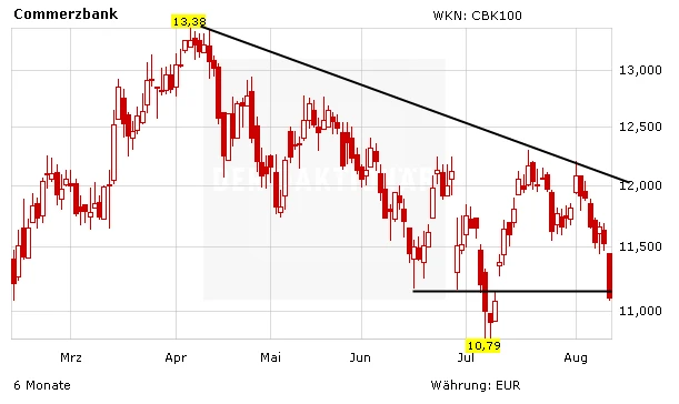 Schaut man sich das Chartbild an, könnte Becker bald Recht behalten. Am Mittwoch ist die Aktie auf den tiefsten Stand seit vier Wochen abgestürzt. Nun droht ein schnelles Abrutschen auf 10,79 Euro. Hält diese Marke nicht, dürfte das Papier schnell Richtung 10,50 Euro fallen.