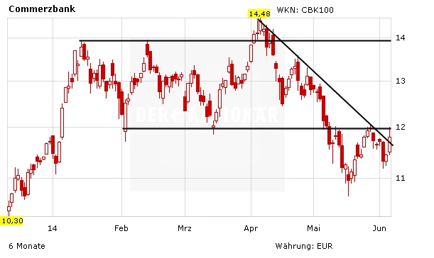 Bei der Commerzbank-Aktie gewinnt nun aus charttechnischer Sicht die Marke von zwölf Euro an Bedeutung. Wenn diese Marke nachhaltig geknackt wird, würde dies ein Kaufsignal bedeuten. Sehr mutige Anleger, die der Empfehlung des AKTIONÄR gefolgt sind und die Kursschwäche zum Kauf genutzt haben, sichern ihre Position mit einem Stopp unterhalb des Tiefs bei 10,66 Euro ab.