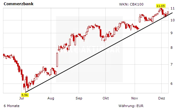 DER AKTIONÄR empfiehlt Commerzbank-Aktionären, die Gewinne laufen zu lassen und die Position mit einem engen Stoppkurs abzusichern.