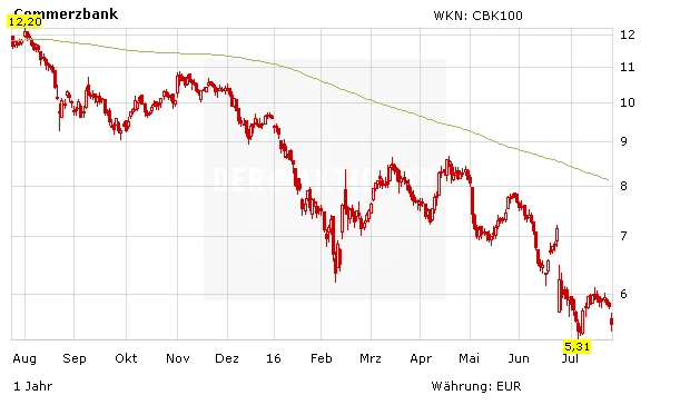 Das Ergebnis der Commerzbank ist zwischen April und Juni um rund 30 Prozent auf 209 Millionen Euro zurückgegangen. Damit wurden die im Vorfeld bereits gesenkten Prognosen der Analysten noch einmal leicht unterschritten. Negativ überrascht hat jedoch vor allem der Rückgang der harten Kernkapitalquote um 0,5 Prozentpunkte auf 11,5 Prozent.