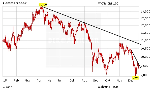 Der schwache Kursverlauf täuscht: Die Commerzbank hat ein recht erfolgreiches Jahr hinter sich. Viele Marktteilnehmer können sich trotzdem kein bisschen mit der Commerzbank und auch nicht mit der Deutschen Bank anfreunden, weil sie weitere Regularieren seitens des Gesetzgebers fürchten, die die Gewinne noch weiter schmälern würden. Wenn sich aber bald der Gesamtmarkt deutlich erholt, dann dürfte die Commerzbank-Aktie – bekannt für eine hohe Volatilität – bestens eignen für schnelle Tradinggewinne.