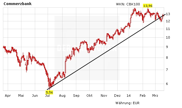 Nach der mit Spannung erwarteten Zinsentscheidung sind die Aktienmärkte am Donnerstag unter Druck geraten. Die Commerzbank-Aktie notiert am Morgen ein gutes Stück im Minus und fällt damit wieder unter die 13-Euro-Marke und unter den Aufwärtstrend. Handelt es sich nur um eine kurze Schwächephase oder ist die Rallye schon vorbei?