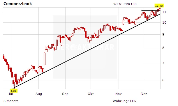 Keine Aktie ist in den vergangenen Monaten so gut gelaufen wie die Commerzbank. Der Aufwärtstrend hat jüngst an Dynamik gewonnen. Die Rallye dürfte weitergehen.