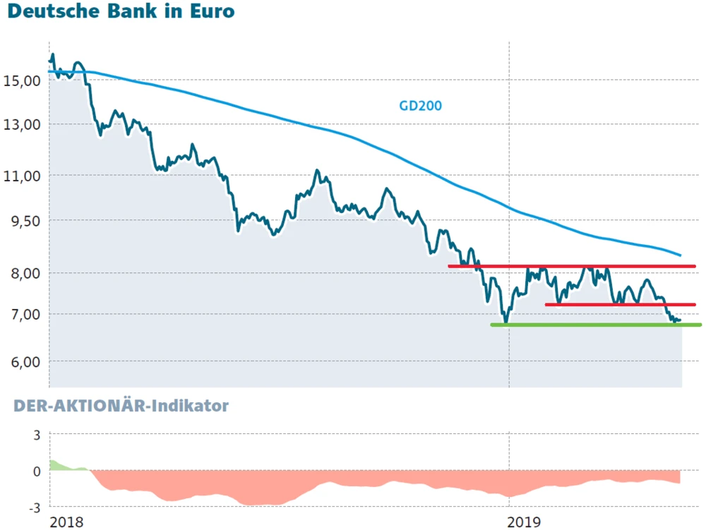 Im Zuge der jüngsten Talfahrt wurden in der Vorwoche bereits die horizontale Unterstützung bei 7,20 Euro und die Marke von 7,00 Euro gerissen. Nun richten viele Anleger einen bangen Blick auf das bisherige Allzeittief bei 6,68 Euro. Am Mittwoch hatte sich der Kurs diesem Bereich bereits bis auf wenige Cent angenähert. Die Gefahr neuer Tiefs ist aber nach wie vor hoch.