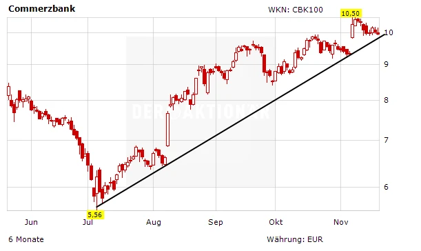Laut Lowe haben Anleger Commerzbank-Aktien gekauft, um damit überdurchschnittlich von einer Erholung der Eurozone profitieren zu können. Allerdings wiesen die Titel aktienspezifische Risiken auf und sähen teuer aus. Zudem spiegele der Kursanstieg nicht die gesenkten Gewinnschätzungen der Analysten im zweiten Halbjahr 2013 wider. Insofern könnten Investoren beginnen, sich nach anderen Papieren umzuschauen. Lowe sieht das Kursziel für die Commerzbank-Aktie bei 6,60 Euro.