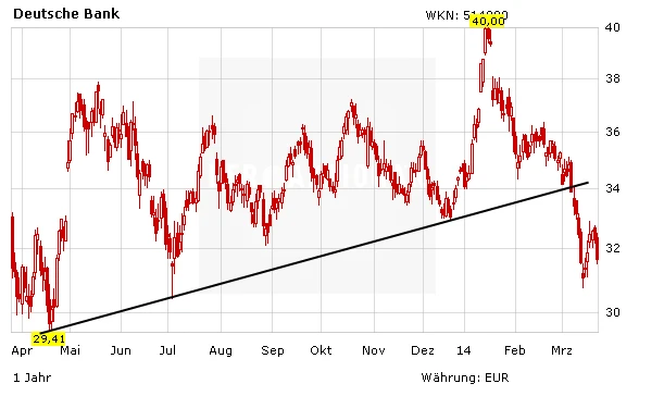 Die Deutsche-Bank-Aktie ist die günstigste Aktie im gesamten Sektor. Anleger mit Mut zum Risiko nutzen die aktuelle Kursschwäche zum Einstieg und setzen den Stoppkurs bei 30,50 Euro. Bei der Commerzbank gilt: Solange der seit Juli gültige Aufwärtstrend nicht nachhaltig gebrochen wird, sollten Anleger investiert bleiben. Bei der Commerzbank sollte der Stopp bei 11,50 Euro gesetzt werden.