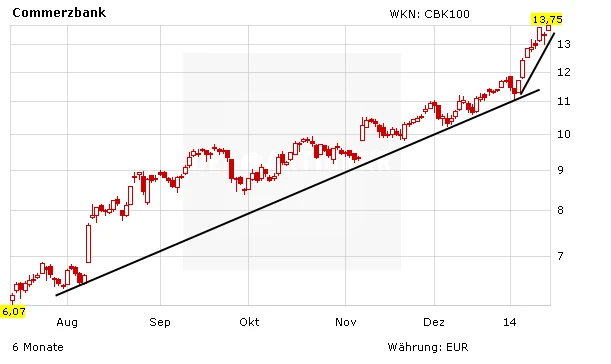 Die Aktien der Bank of America haben am Mittwoch kräftig von ihrer Bilanz für 2013 profitiert. Auch Commerzbank und Deutsche Bank setzten ihren Aufwärtstrend fort. Die Aussichten sind gut.