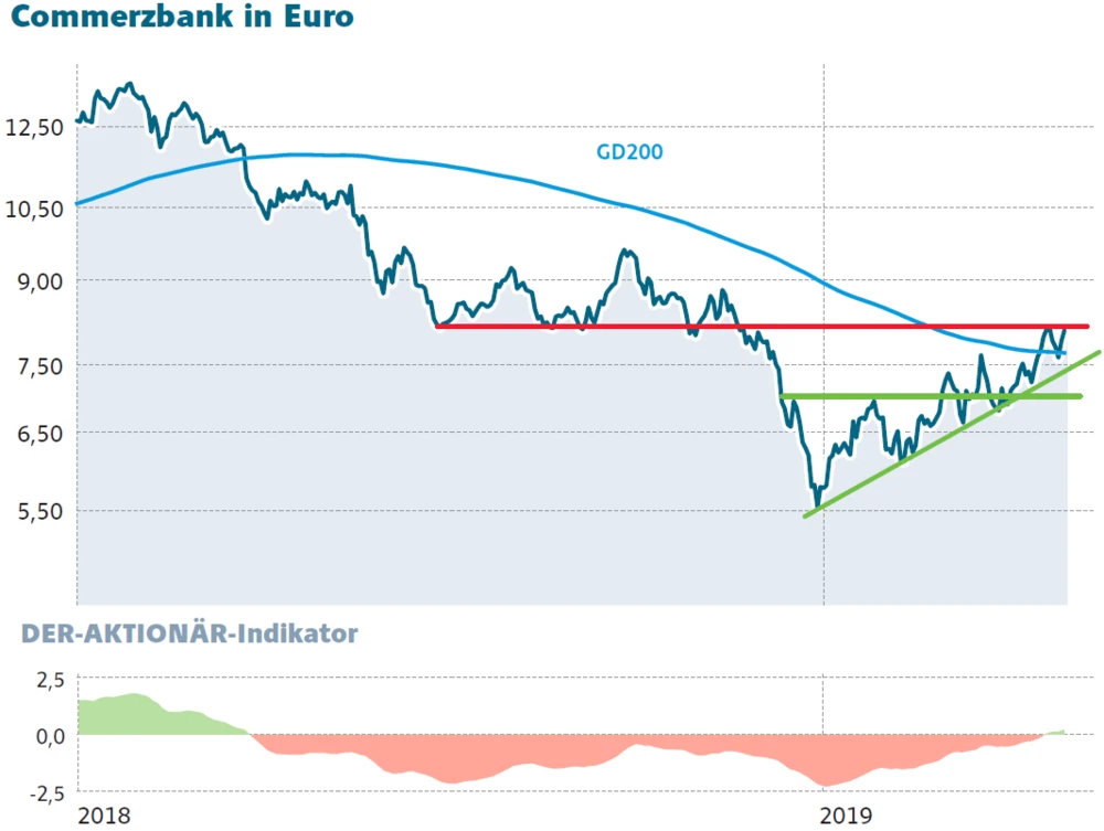 Der ergebnislose Abbruch der Fusionsgespräche hat die Commerzbank-Aktie in der Vorwoche nur kurz belastet. Seitdem geht es wieder deutlich bergauf. Nach rund 3,6 Prozent Kursplus am Freitag legt sie auch am Montagvormittag über zwei Prozent zu. Die Trading-Empfehlung des AKTIONÄR gilt weiterhin.
