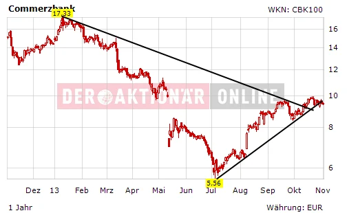 Die Commerzbank legt am Donnerstag die Zahlen für das dritte Quartal vor. Equinet-Analyst Philipp Häßler rechnet wegen eines gesunkenen Handelsgewinns mit einem schwachen Vorsteuergewinn, so der Analyst bei der Investmentbank Equinet in einer Studie vom Donnerstag. Beim kommenden Stresstest drohten unter den deutschen Banken der Commerzbank die größten Risiken.