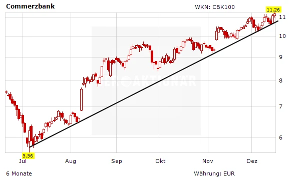 Die Commerzbank-Aktie kennt seit Monaten nur eine Richtung: Norden. Seit Juli hat der Titel über 90 Prozent zugelegt. Das liegt unter anderem an der Übernahmefantasie. Immer wieder machen Gerüchte die Runde, wonach die Commerzbank von einer anderen Bank gekauft werden könnte. Diese Meinung vertritt auch Hans A. Bernecker. "Das Interesse ausländischer Großbanken hat Bestand", erklärt die Börsenlegende im Gespräch mit dem AKTIONÄR.