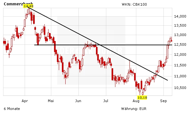 Die Anleger reagieren am Dienstag gelassen auf die Studie. Die Aktie verliert gerade mal 0,6 Prozent. DER AKTIONÄR sieht bei der Commerzbank derzeit mehr Chancen als Risiken und bleibt bei seiner Kaufempfehlung für die Aktie. Das Kursziel lautet auf 14 Euro, der Stopp sollte auf 9,80 Euro angehoben werden.