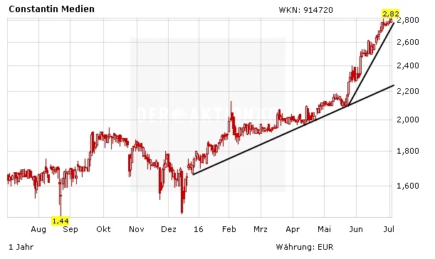 Die Hauptversammlung verspricht spannend zu werden. Zwischen Burgener und Hahn ist ein Machtkampf entbrannt. Auch charttechnisch ist bei dem Papier Feuer unterm Dach – der Aufwärtstrend hat sich zuletzt noch einmal beschleunigt und die Aktie auf ein neues 8-Jahres-Hoch gehievt. Anleger bleiben weiter dabei, denn die Zukunftsaussichten stimmen. Nicht investierte Anleger können Rücksetzer deshalb zum Einstieg nutzen.