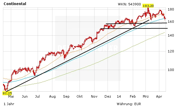 Exane BNP hat die Aktie von Continental zuletzt nach oben gestuft. Das Kursziel hoben die Experten von 180 Euro auf 200 Euro an. Kurz zuvor hat Deutsche-Bank-Analyst Jochen Gehrke die Aktie des Autozulieferers unter die Lupe genommen. Seine Empfehlung lautet weiterhin die Aktie zu kaufen. Gehrke sieht ein Kurspotenzial bis 195 Euro.