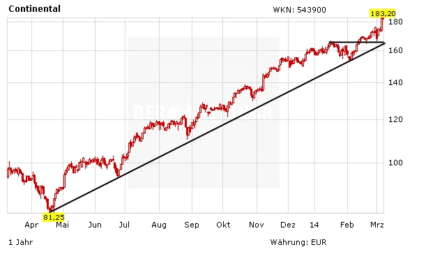 Continental ist einer der Top-Picks am deutschen Aktienmarkt. Auch nach der Kursrallye ist die Aktie einer der aussichtsreichsten Werte im DAX. Intakter Aufwärtstrend, starke Zahlen, optimistischer Ausblick. Neue Höchstkurse sind bald möglich.