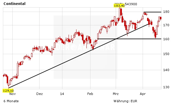 Die Continental-Aktie befindet sich derzeit in einer Korrektur. Nach dem monatelangem Kursanstieg ist das eine normale Reaktion. Dennoch bleibt Conti eine der aussichtsreichsten Werte im DAX. Investierte Anleger beleiben dabei. Das langfristige Kursziel lautet weiter 220 Euro.