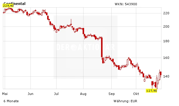 Zudem gibt es den vielzitierten Silberstreif am Horizont: Finanzchef Wolfgang Schäfer hat letzte Woche erklärt, dass der Autozulieferer im dritten Quartal etwas besser abgeschnitten hat als zuletzt befürchtet und damit die zuvor bereits zweimal gesenkten Prognosen erreichen dürfte. „Umsatzseitig hatten wir rund 45 Milliarden für das Gesamtjahr angekündigt, es könnten vielleicht 44,5 Milliarden werden. Das ist noch im Rahmen dessen, was wir erwartet haben, liegt aber auch hier eher am unteren Ende unserer Prognose", so Schäfer. „Die bereinigte Umsatzrendite sollte im Gesamtjahr wie angekündigt über neun Prozent liegen“, bestätigte er Aussagen aus dem August. Die Aktie konnte sich im Anschluss ihre Talfahrt stoppen. Die nächsten Zahlen gibt es am 8. November.