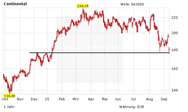 Zudem verwies der Experte auf das breitgefächerte Portfolio des Konzerns. Das klassische Reifengeschäft generiere einen stabilen Cashflow, gleichzeitig profitiere Conti von seinem Angebot an Fahrerassistenzsystemen und dem Megatrend hin zu intelligenten Fahrzeugen.