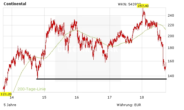 Es bleibt trotz vieler Bemühungen des Unternehmens abzuwarten, wie der Konzern die kurzfristigen Herausforderungen meistern wird. Die Ereignisse in den vergangenen Monaten haben den Kurs der Conti-Aktie auf das Niveau von 2014 fallen lassen. Eine technische Unterstützung liegt auf dem damaligen Jahrestief bei 136,85 Euro.