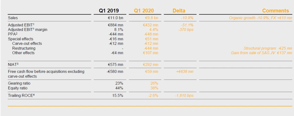 Wie viele Unternehmen der Branche ist Conti stark von den Folgen der Viruskrise wie geringeren Fahrzeugverkäufen betroffen. Wie der Dax -Konzern aus Hannover am Donnerstag berichtete, ging von Januar bis März verglichen mit dem Vorjahreszeitraum um 10,9 Prozent auf 9,8 Milliarden Euro zurück. Das unter anderem um Sondereffekte bereinigte Ergebnis vor Zinsen, Steuern und Abschreibungen nahm im ersten Jahresviertel um 51,1 Prozent auf 431,9 Millionen Euro ab.