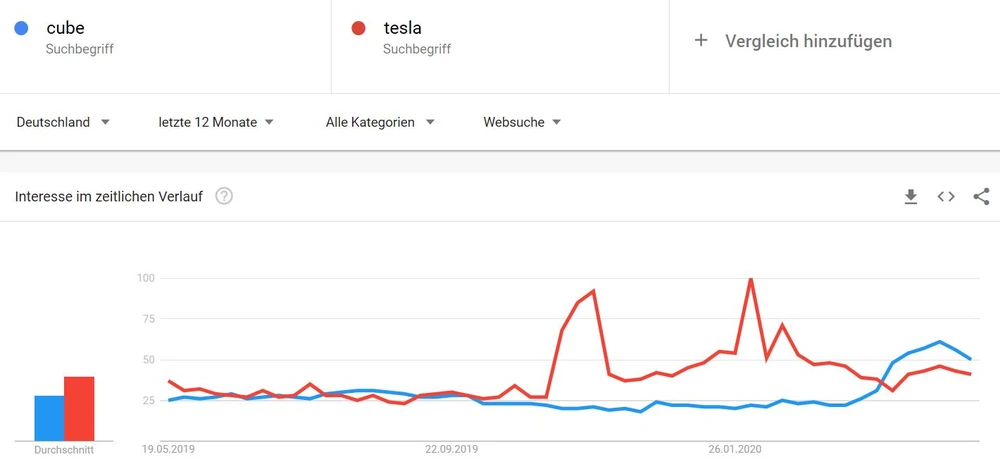 Besonders elektrische „Tesla-Fahrräder“ sind gefragt. Google-Trends zeigt: Das Interesse an mit Batterie betriebenen E-Bikes schnellt in diesen Tagen mehr nach oben als das nach Elektroautos.