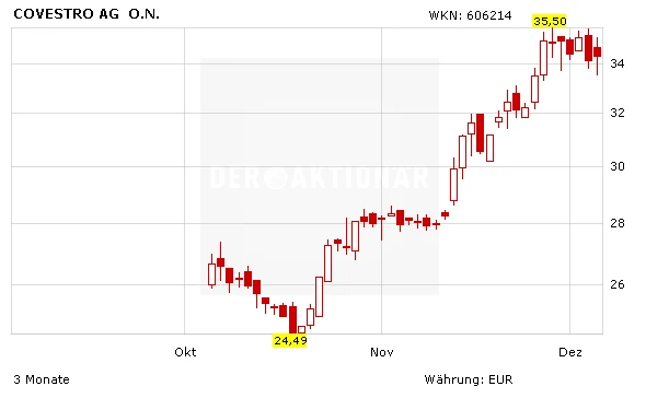 Das Analysehaus Kepler Cheuvreux hat die Einstufung für Covestro auf "Buy" mit einem Kursziel von 38 Euro belassen. Die Angebots- und Nachfrage-Entwicklung sollte die Ergebnisse der Bayer-Kunststofftochter antreiben, so Analyst Christian Faitz in einer Studie zu europäischen Chemiewerten. Die Papiere zählten zu seinen bevorzugten Werten der Branche.