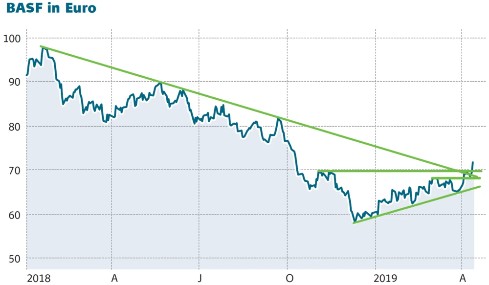 BASF ist mit seiner starken Positionierung in zahlreichen attraktiven Märkten innerhalb des Sektors einfach am stabilsten aufgestellt. Die Ludwigshafener verfügen zudem über eine solide Bilanz und eine attraktive Dividendenpolitik. Darüber hinaus sieht es nach dem Ausbruch aus dem Abwärtstrend auch charttechnisch betrachtet gut aus. Anleger können daher weiterhin zugreifen (Stopp 54,50 Euro).