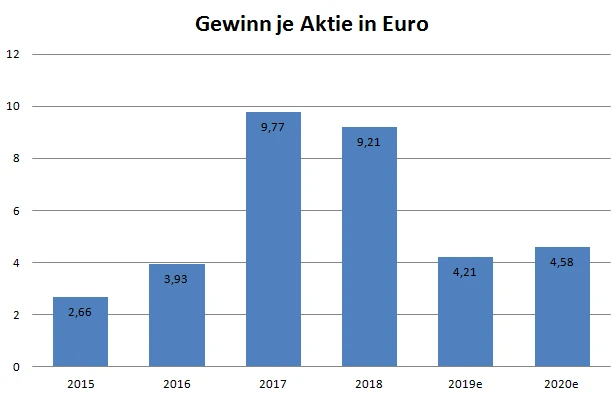 Bei Covestro ist der Grund für den Kursrückgang schnell ausgemacht: Der DAX-Titel wird heute ex-Dividende gehandelt. Rechnet man den Abschlag in Höhe von 2,40 Euro heraus, würde die Aktie erneut im Plus notieren. Nichtsdestotrotz favorisiert DER AKTIONÄR im Chemiesektor weiterhin die Aktie des Weltmarktführers BASF, bei dem der Gewinn anders als bei Covestro (siehe Grafik unten) im laufenden Jahr halbwegs stabil gehalten werden kann.