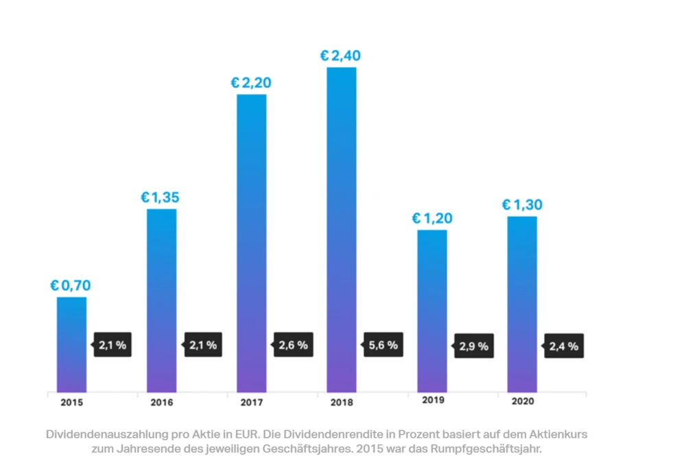 Nachdem Covestro die Ausschüttung für 2019 im Zuge der Corona-Pandemie halbiert hatte, gibt es nun zehn Cent mehr als im Vorjahr. Angesichts der Tatsache, dass das Geschäftsjahr 2021 für den Chemiekonzern bisher sehr gut läuft - siehe hier - stehen die Chancen relativ gut, dass auch die Dividende für 2021 angehoben wird.