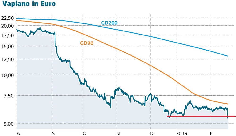 Die Anleger reagieren geschockt auf die Meldung, die Aktie crasht um zwölf Prozent auf 5,50 Euro. Vor 15 Monaten stand der Titel noch bei 24,80 Euro. Vapiano wird aller Voraussicht nach dieses und kommendes Jahr Verlust machen. Das Eigenkapital beläuft sich aktuell auf 100 Millionen Euro. Bei einem erwarteten Jahresverlust von 40 Millionen Euro wäre das Eigenkapital folglich in knapp zweieinhalb Jahren aufgebraucht, sofern es keine neuen Maßnahmen wie eine Kapitalerhöhung geben würde. So ist ein dringend erforderlicher Schritt, dass Vapiano seine großen Expansionspläne auf Eis legt.