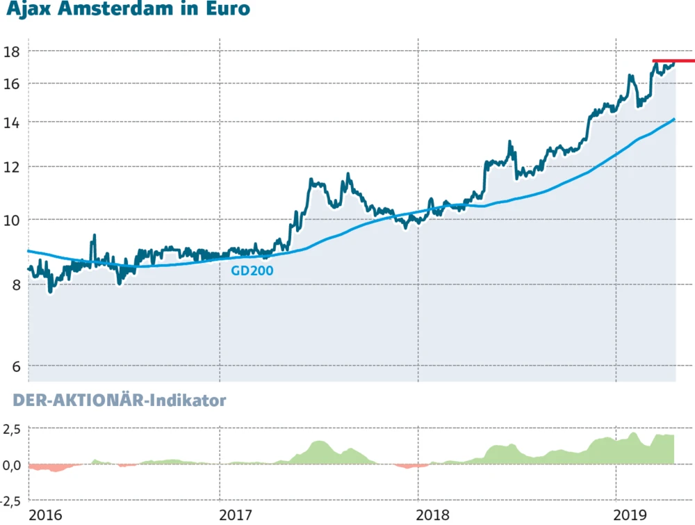 Ajax Amsterdam kann am Dienstag eine Sensation schaffen. Gewinnt das Team von Trainer Eric ten Hag im Rückspiel der Champions League gegen Juventus Turin mit Superstar Cristiano Ronaldo, zieht Ajax ins Halbfinale der Champions League ein. Damit würde Ajax Amsterdam weitere 12 Millionen Euro in die Kassen bekommen. Die Aktie steht kurz vor dem Sprung auf ein neues Allzeithoch!