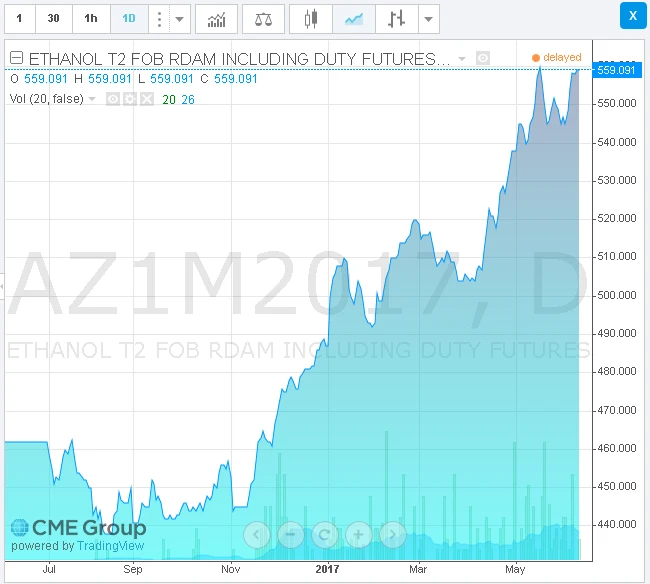 Für das laufende Fiskaljahr stapelt CEO Joachim Lutz tief: Lediglich 40 bis 80 Millionen Euro stellt das Management beim operativen Ergebnis in Aussicht. Allerdings prognostiziert CropEnergies aufgrund der stark schwankenden Ethanol-Futures stets konservativ.Doch die Preisentwicklung spielt der Firma weiter in die Karten.