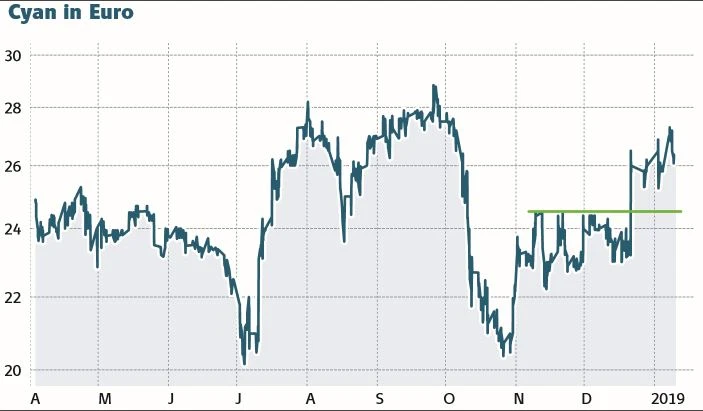 Der Newsflow stimmt bei Cyan. Trotz der hohen Bewertung ist die Aktie nach wie vor kaufenswert. Ausgehend vom Kursziel der GBC AG (49,50 Euro) hat Cyan ohnehin noch ordentlich Potenzial. DER AKTIONÄR empfiehlt einen Stopp-Kurs bei 19,50 Euro zu setzen.